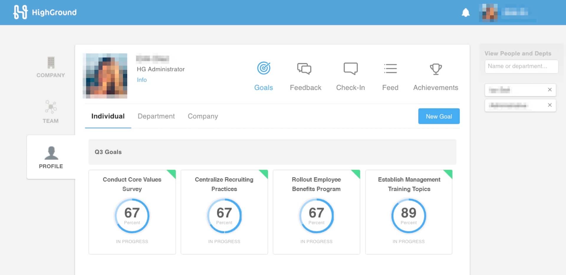 Implementing a performance management software system is a great idea to encourage this accountability among the office. HighGround is a great one that uses self-evaluations along with feedback requests for true transparency throughout the organization. It also allows users to track their progression by setting personal goals that align with overall business goals, especially those related to culture change and growth.