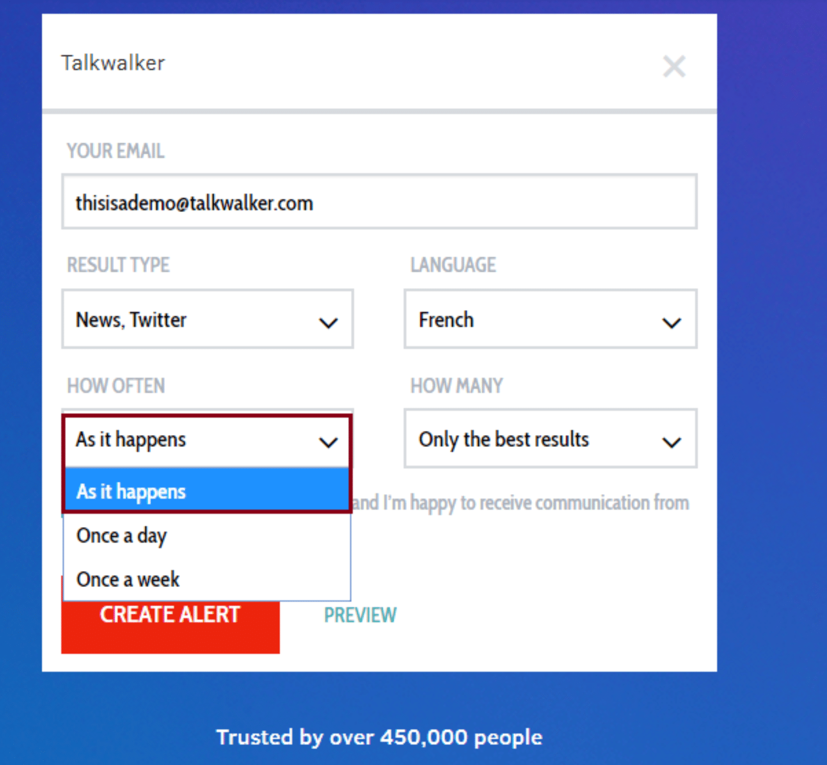 In order to keep everyone actively engaged with industry news, setting up an alert system that tracks company mentions or industry-related content can be very helpful. Social listening tools like Talkwalker Alerts can be programmed to send out alerts whenever specific keywords (like your company name) or general information (industry-related news) is posted online. It not only monitors social media mentions, but blog posts and online articles as well.